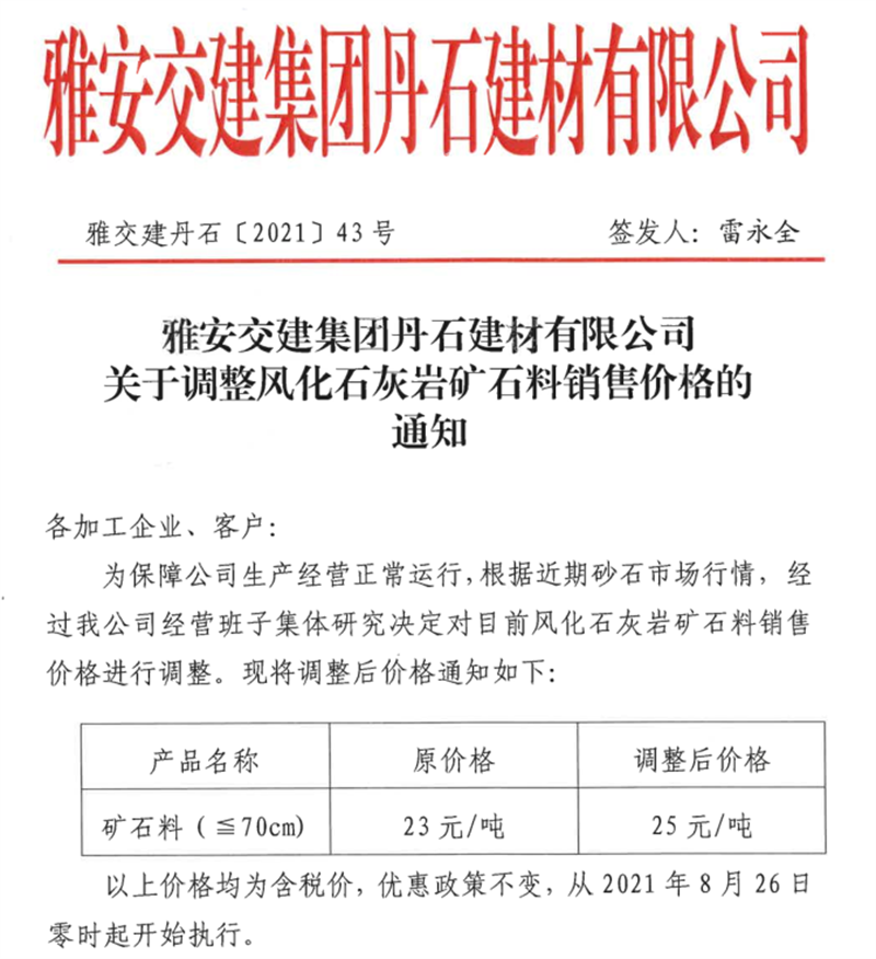 ÑŰ²½»½¨¼¯ˆFµ¤Ê¯¹«Ë¾êPÓÚÕ{ÕûïL»¯Ê¯»Ò?gu¨©)rµVʯÁÏäNÊÛƒr¸ñµÄ֪ͨ
